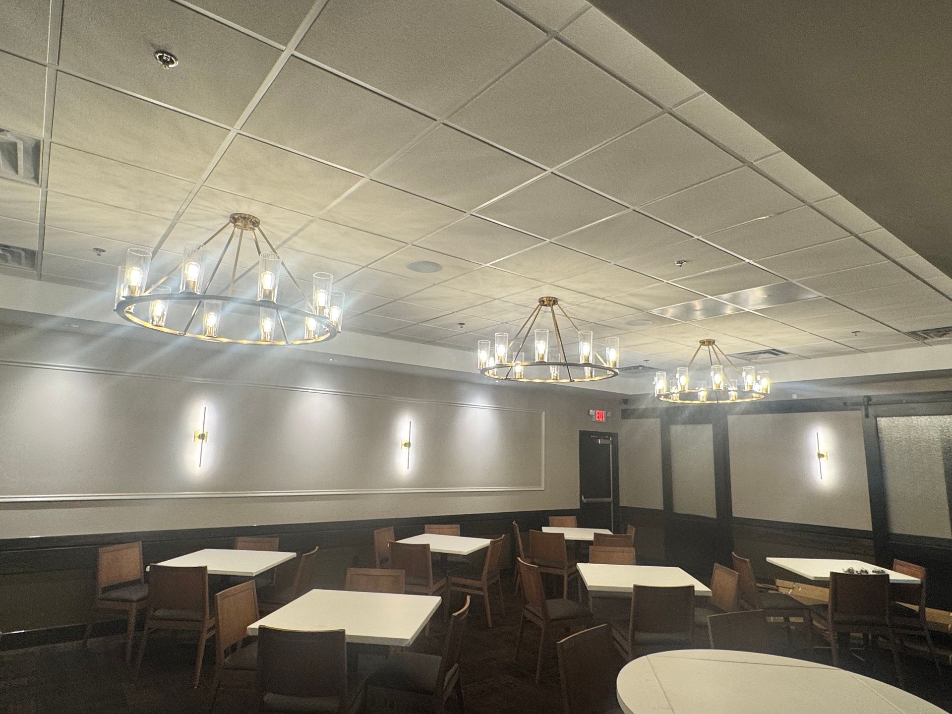 All lighting fixtures and selections were chosen by the client. Blake & Co. Electrical Service handled procurement coordination, installation, and system integration to ensure everything functioned correctly and met commercial electrical standards.